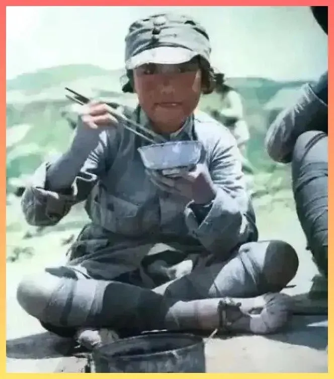 看到这张.照片,.我的鼻子一酸.。一个小战士捧.着大碗在吃饭,碗里的饭菜可能并不丰.盛,甚至可能夹杂着沙砾.,但她吃得那么香。那时候能吃.上一顿饱饭,可能就是她们一.天中最大.的幸福。 看着她那稚.嫩的脸庞,本.该是在父母膝下撒娇的年纪,却早早背上.了国仇家恨。