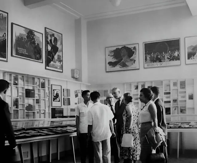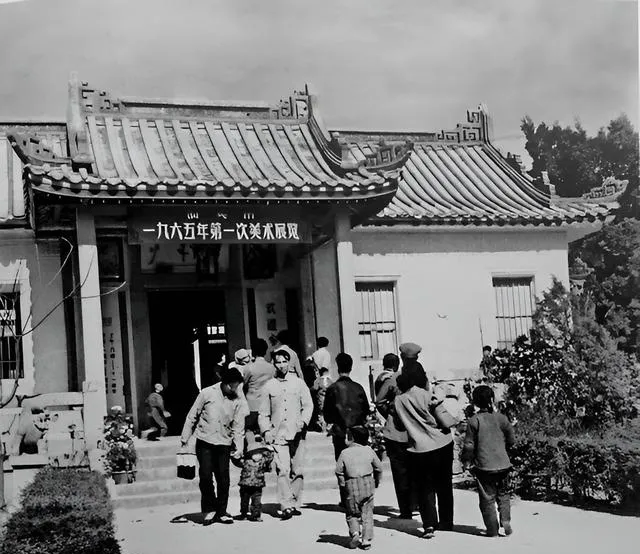 “1965年第一次美术展览”的横匾挂在门口,青瓦屋檐配着白墙,乡亲们牵着孩子进去看画,出来时小孩手里多了一张印着红花的节目单,珍惜得很。