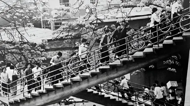大家排着队把自行车推上去,栏杆是细管焊的,层层上去像一条长龙,那时脚力就是引擎,慢一点也不碍事。