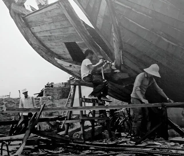 船肚子翻在岸上,木匠抡起刨子,木屑一卷一卷落下,锤声钉声像在唱戏,靠海吃海的人,就靠这双手把饭碗造出来。