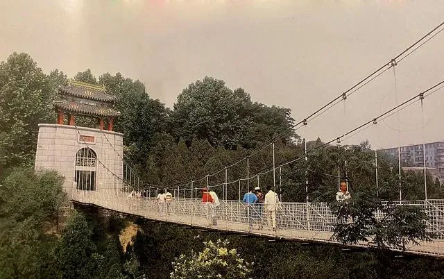 80年代焦作老照片:汽车拉力赛盛况空前,人民公园吊桥真好玩。