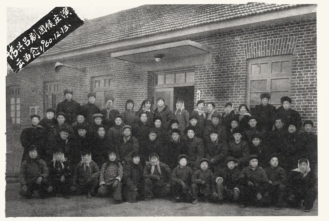 1960年12月13日博兴吕剧团侯庄演出留念(注:1958年10月,桓台县建制撤销,并入博兴县,故桓台吕剧团更名为博兴吕剧团)。(照片提供者:苗德云 苗德雨)