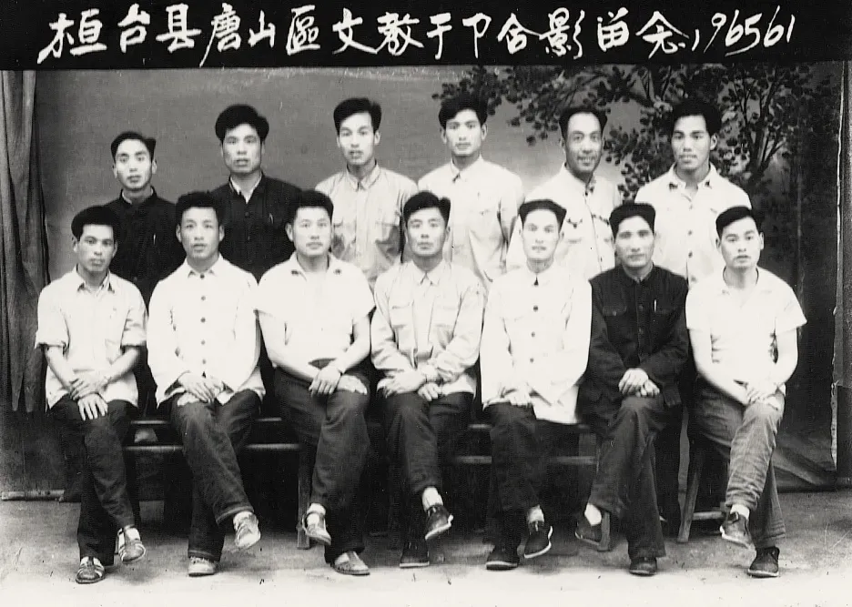 1965年6月1日桓台县唐山区文教干部合影留念。前排右三为潘精良(时任前毕完小校长)、右四为常文森(时任唐山区文教助理)。(照片提供者:潘精良)