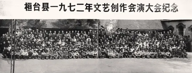 1972年9月,桓台县在河东剧场举办了文艺创作会演,上图是会演结束后全体演员、老师和服务人员在县委党校(原高家大院)集体合影留念。在这次会演中桓台二中“毛泽东思想文艺宣传队”取得了第一名的好成绩。(照片提供者:李可禄)