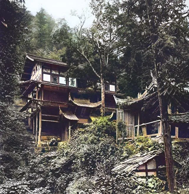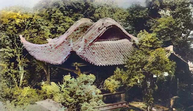 这处依山的楼观屋顶错落,檐牙挑起,木窗透着旧漆味,台阶湿滑,苔痕从石缝里挤出来,走到回廊尽头,山风从竹海里钻过来,带点清凉。