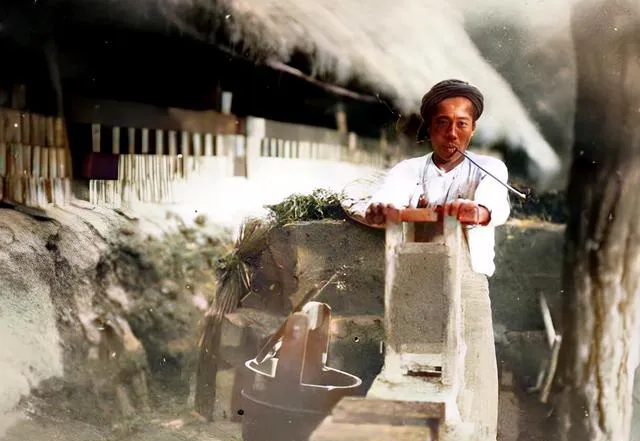 图中这位是制砖的匠人,木模抹了湿泥,手臂一压一抹,脱模利落,门檐下码着一摞摞砖坯,风从巷口钻进来,带起一股土腥味,晒硬了再进窑,红得发亮。