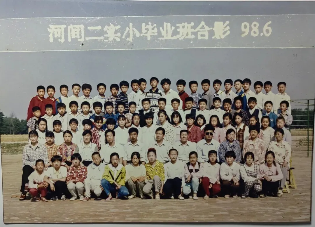这是一张拍摄于1998年6月的河间老照片,是河间市第二实验小学的毕业班合影,但照片上的文字标注为“二实小”,那时候,人们俗称为“一实小”、“二实小”,而不是现在俗称的“一实验”、“二实验”,仿佛转眼之间,28年已经过去了!当年的二实验小学非常简陋,只有几排红砖平房,一处楼房也没有。平房在北侧,校门口是向南开的,校门口南侧是一大片空地,当时的空地在现在的二实验幼儿园和二实验家属楼位置。你看28年前的小学毕业生们,大都面容严肃,穿的衣服也很朴素,白色、蓝色,如果是条纹、碎花的,已经算是时尚了。老照片上的老师正是年轻的时候,第二排最中间的是时任校长王秋合,一晃28年过去了,当年的各位老师,你们还好吗?照片上的学生们,当年顶多不过十一、二岁的年纪,当年拍下这张照片时,他们或许觉得很普通,不过是毕业前必须完成的一件事,等到28年后的今天,当你再看到这张照片时,可能已到不惑之年,可能你的孩子都已经上了初中、高中,现在的你,还记得自己28年前的青涩模样吗?照片终会泛黄,那些砖房、空地、朴素的衣襟,都成了生命里最初的坐标。如今,“二实小”的称呼已改,校舍也已变迁,可当年镜头定格的,不仅是十一二岁的容颜,更是一整个纯真年代的记忆。老师们或许白发染鬓,学生们或许散落四方,但每当目光与这张照片相遇,却足够穿透28年光阴,轻轻叩问每个望向它的人:你是否还记得,自己最初的模样?时光啊,请走得慢些,让这份青涩的珍贵,永远亮在岁月深处。