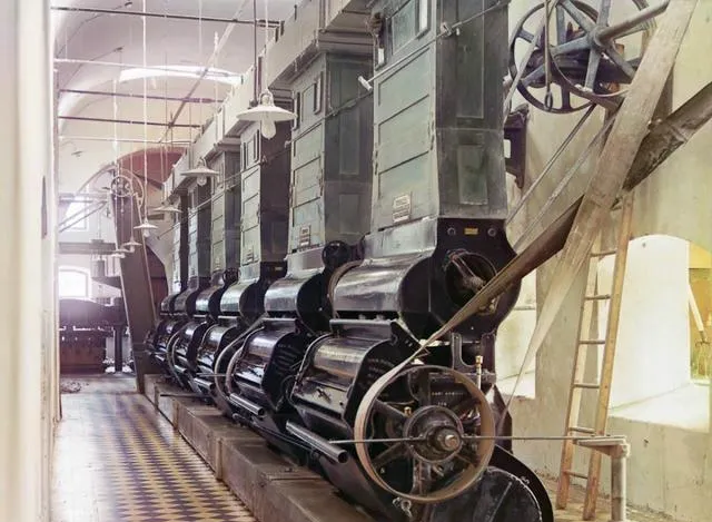 这一排黑亮机器叫轧花机,皮带在高处绕圈,飞轮沉甸甸,地砖铺着棋盘格,灯线一根根拉过天花板,师傅说,机器不怕累,就怕没人管。