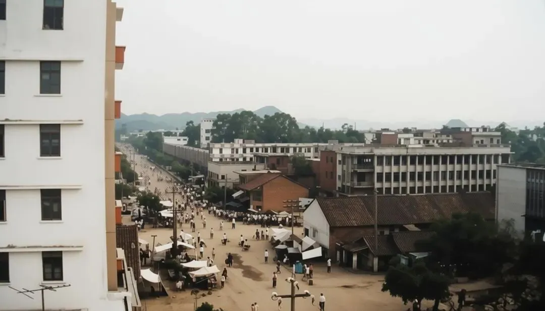 1990年时的来宾镇中心小学,2005年撤来宾镇置河西街道↓