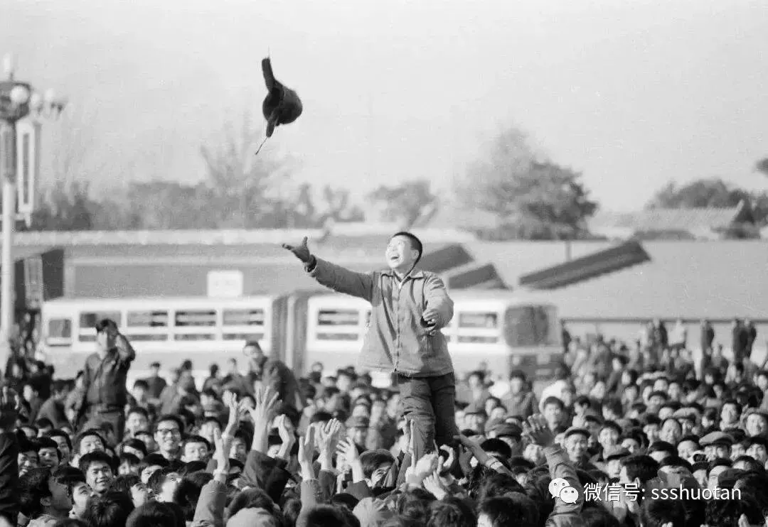 △人群聚拢在天安门广场欢呼:“中国万岁!女排万岁!”