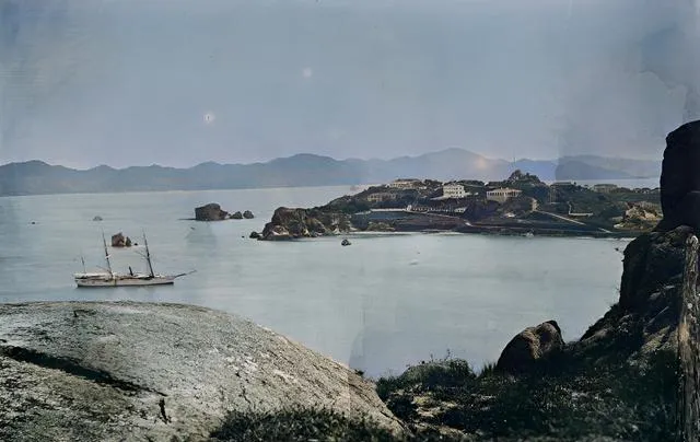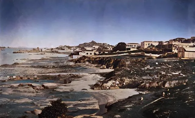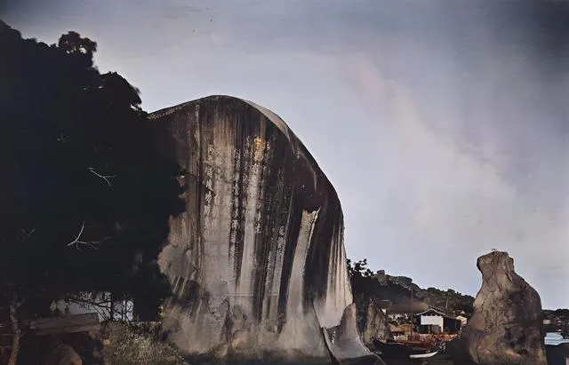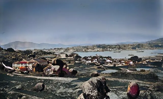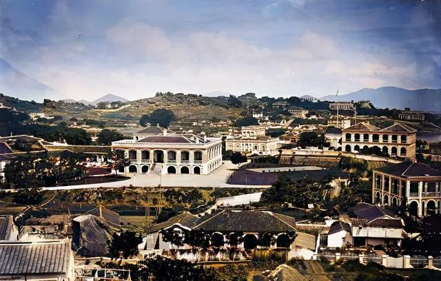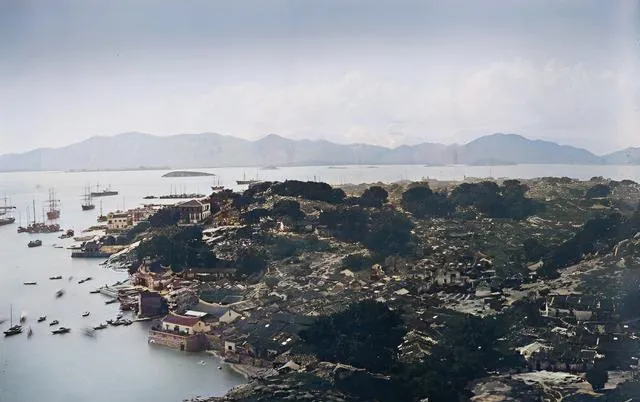 弯出的大湾里停着高桅船,帆收得紧紧的,海面开阔,城中绿块是榕树,石屋与瓦屋交替排开,若是黄昏时分,应该能看见霞光把水染成金色,这一景,放今天也还看不腻。