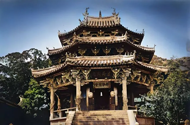 这个飞檐挑角的亭阁叫法雨频施亭,木构层层抬起,柱础圆润,台阶两边石狮子蹲得精神,传说建的时候一根钉子也没用,走上去脚下咚咚作响,寺里香烟一缕缕往上飘,和现在整修过的殿宇比,这份古朴味道更重。