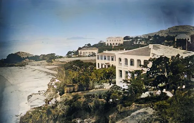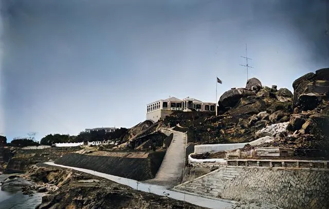 这个高地上的洋房,墙面是浅色的,前面立着旗杆,旗子猎猎作响,台阶一路蜿蜒到江边,应该是当年的领事馆或办事处,爸说那年代外洋人多在沿海置屋,取景向海,开窗就是风。