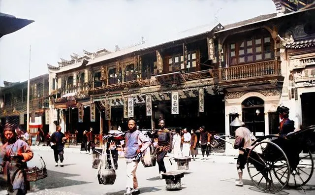 这个街口叫南京路,牌匾一溜儿挂着,二层木楼挑着栏杆,肩挑担子的伙计从人堆里挤过去,架子车叮叮当当,过去这里已算繁华,如今两侧高楼玻璃一片,走在路心看不见天边。