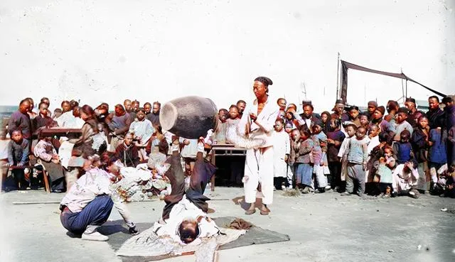 这场表演是真惊险,艺人把大缸蹬得在空中打滚,地上铺一层破毡就算垫子,旁边的小孩瞪着眼不敢眨,掌声和口哨一起涌上来,收场时师傅抱拳一揖,铜盆里叮当落下细碎的铜子。
