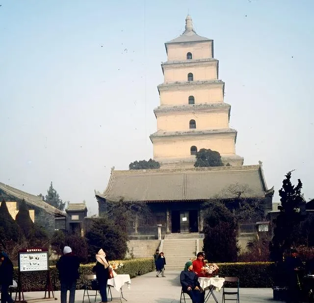 80年代西安老照片:鼓楼前还没有夜市,大雁塔下没什么游客