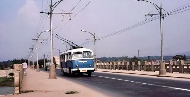 这个蓝白电车拐过城门口,车后连着一节车厢,喇叭不响,只是“嗡”地滑过去,路边的娃娃追了两步,拉着父亲的衣角说要坐,父亲笑着摆摆手,说回头吧改天再去坐。