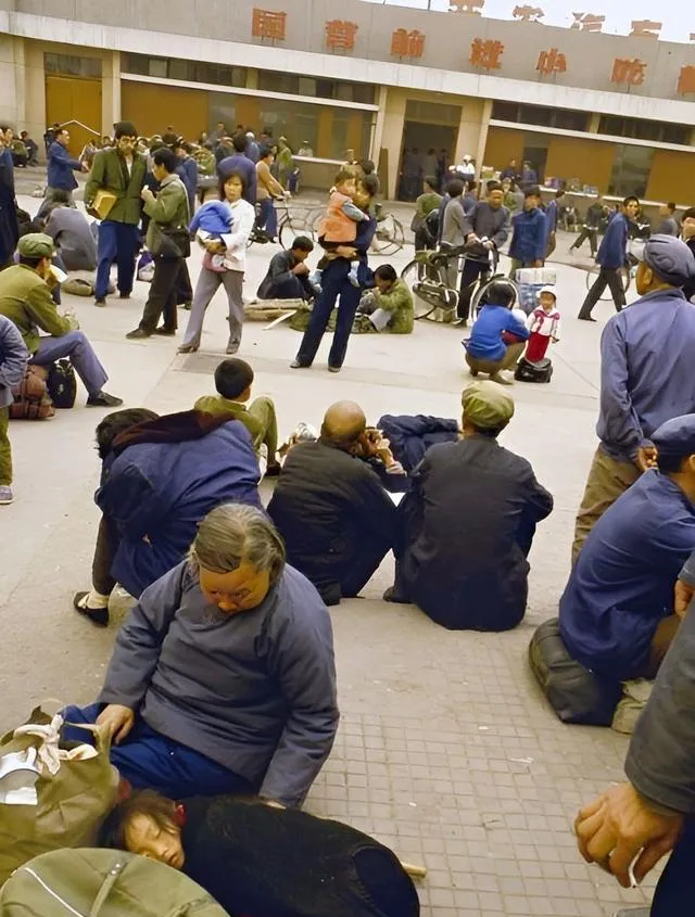 这个场景在老西安人心里太熟了,火车站外人挤人,草绿色帆布包一地都是,孩子坐在行李上打盹,大人就着开水瓶抿一口热水,谁都不抱怨,等着车来的喇叭一响,大家提包就走。