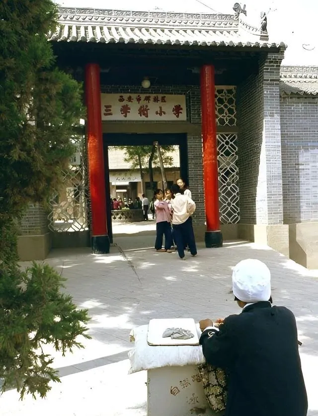 这个摆着小圆桌的地方在雁塔前,照相馆把花瓶摆好,游客坐下抬抬下巴就能按快门,奶奶说那会儿照一张可得攒两周零花钱,拍完揣兜里一路捂着回家。