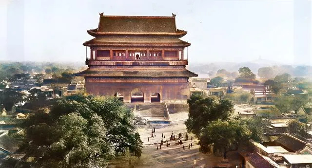 图中这座高大的建筑就是城中的鼓楼,红墙灰瓦,窗洞一溜排开,楼下人影斑驳像在赶集,城砖厚重,影子把午后的光压得很稳,以前报更击鼓在这儿,到了晚上城门一落,整座城就安静得只剩脚步声了。