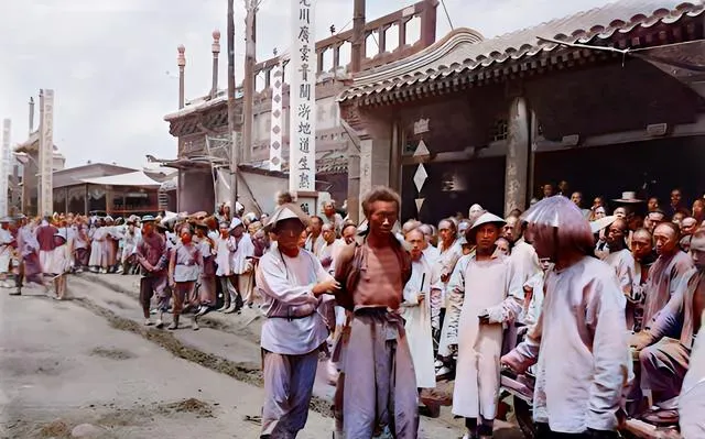 最先入眼的是长串围观的人,里巷泥水未干,前头有人抓着犯人的手腕往前带,后头孩子踮脚看热闹,街面所有铺子都探出头来,这一幕在戏里常见,在真相册里更凉。