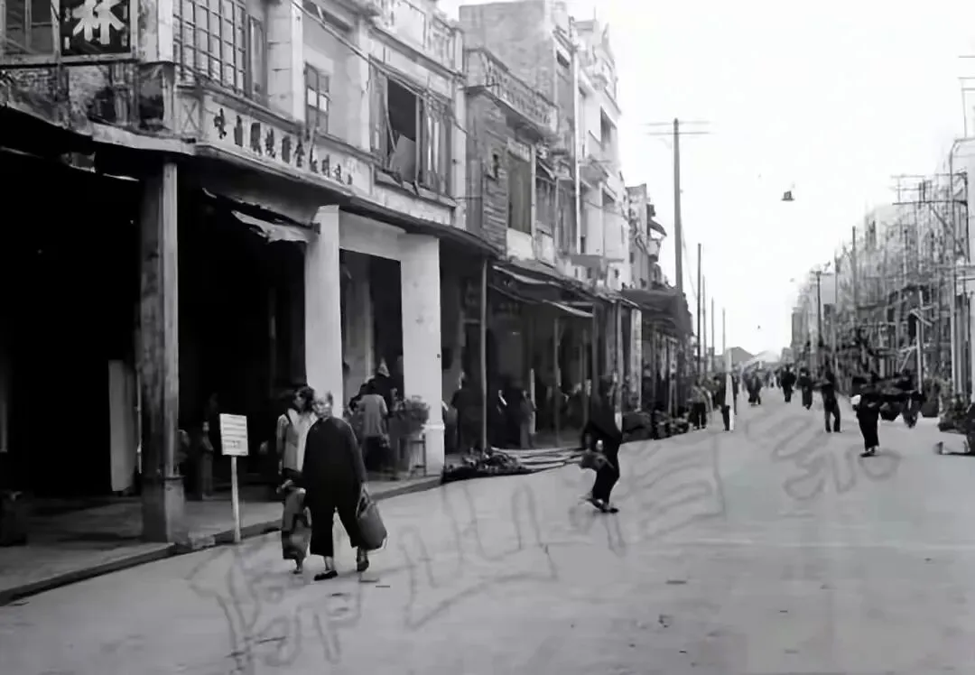 这条是汾宁路,马路上人来人往,十分热闹,两边的房屋都是骑楼式的,永安大药房的招牌高高挂在店铺上方,老远就能看见。