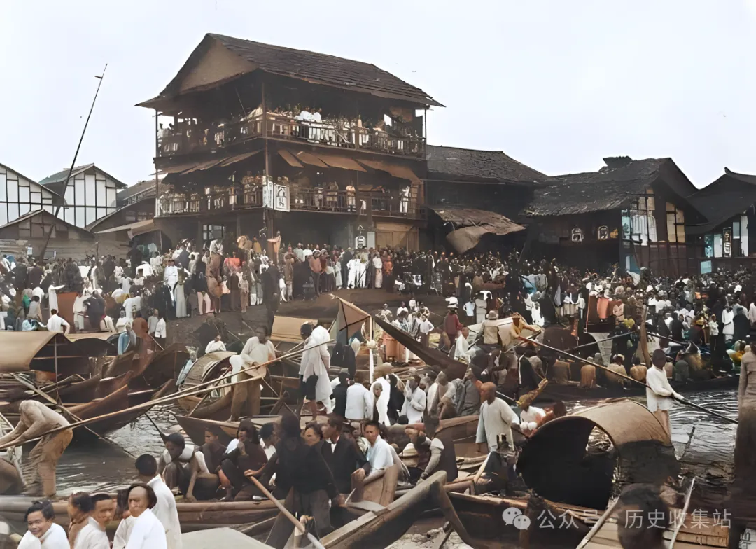 清末的湘潭河畔,人群熙熙攘攘,热闹非凡。人们纷纷聚集在河边,翘首以盼即将开始的赛龙舟盛事。他们或站立或坐卧,有的手持彩旗,有的挥舞着锣鼓,脸上洋溢着期待与兴奋。河面上,龙舟队伍已经准备就绪,蓄势待发。观众们纷纷为心仪的队伍加油助威,现场气氛热烈而紧张。