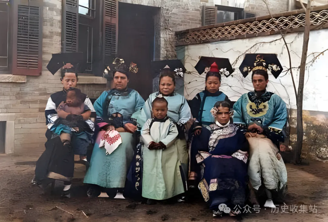清末,一群穿着旗装的洋贵妇和满族贵妇合影留念。她们随夫漂洋过海来到中国,尽管逐渐尝试移风易俗,但穿上旗袍后却显得老气横秋,失去了原有的青春活力,尽管如此,《大公报》1907年6月的报道仍指出,这些外国女性 "以旗装为社交礼服,实开风气之先"。她们的尝试恰如《清末使馆区生活记》所述,是 "用服饰外交打破文化隔阂" 的努力。