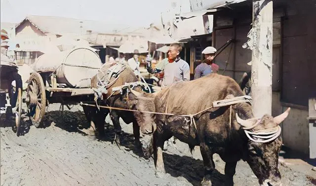 这个圆滚滚的铁桶绑在车架上,前头两头牛哈着热气,车夫牵着缰绳往前挪,泥地里车轮“吧唧吧唧”往下陷,奶奶笑,说小时候在城里等着这种水车,拿着瓦壶去接,装满了拎回家,一路晃荡像抱着个小暖炉,现在拧开水龙头就有热水,那会儿一桶水能把一家人一整天的活计都安排明白。