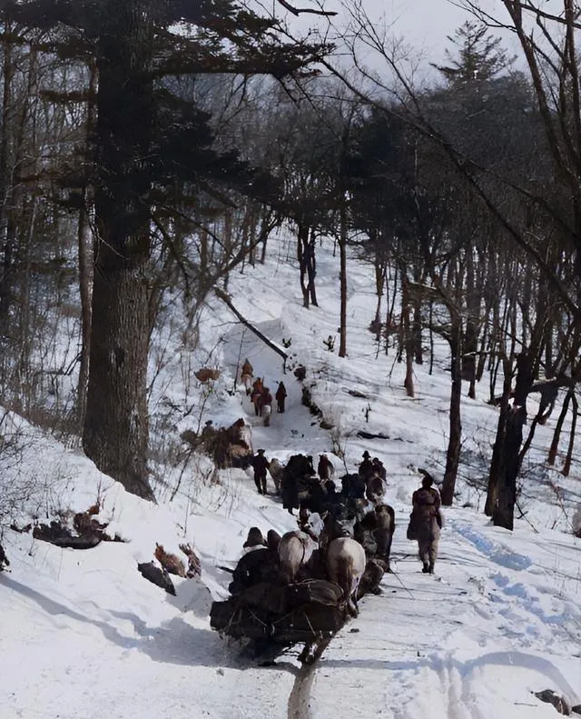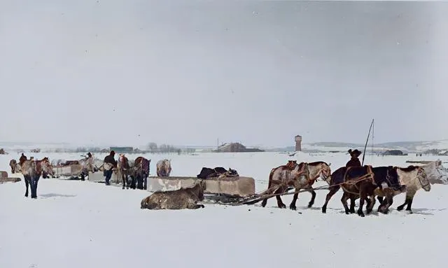 一串爬犁从林子里蜿蜒下去,马喘着白气,套子上的铜扣子“叮叮”响,拉货的人把毡帽往下一按,脚底的雪被压出深槽,小时候听外公讲,说**“雪路好走也难走”**,好走在省力,难走在一个不稳就翻,人和货全滚下去,现在冬天路面撒了融雪剂,车窗里再也看不见这样的长龙。