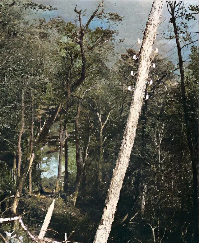 这根木杆歪歪地倚在林子里,瓷瓶一只只钉在杆身,告诉你这里曾热闹过,或者至少有人在这儿守过线路,越是静,越显得人走声留。