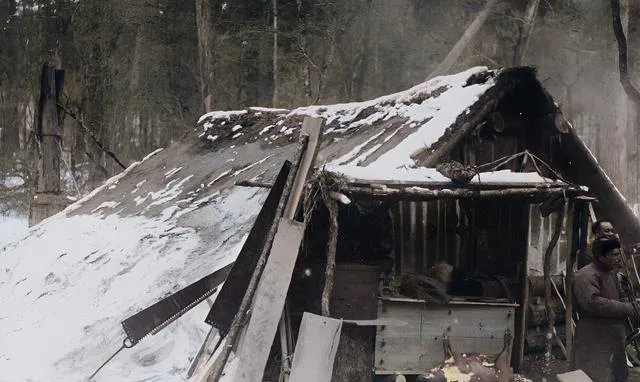 这个窝棚才真神秘,板皮和毡片拼起来的屋顶压着一层薄雪,檐下搭着锯条,火堆窜着小火苗,两个伐木工缩着肩,脸被烟熏得黑里透红,我第一眼以为是电影里的场景,凑近看才明白,日子在这儿被烤得发苦又发甜。