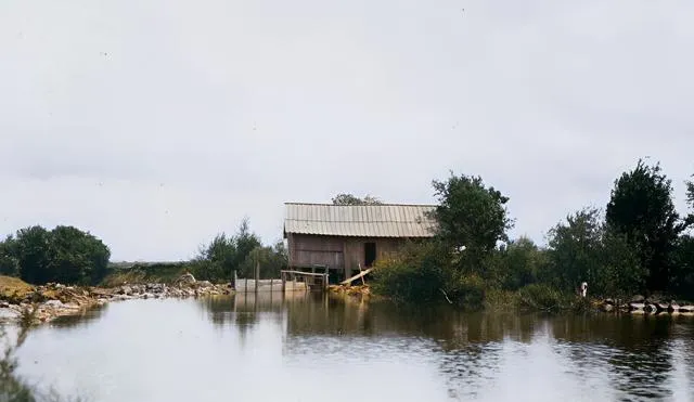 这个矮屋就是水磨,水流从一边引过去,带着木轮子“咕噜噜”转,人只要把谷物倒进斗里就行,磨出的面粉细细的,手一抹会冒白烟,家里蒸个窝头,香味从门缝里就跑出来。
