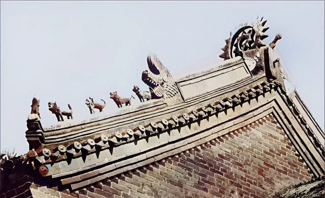 这个砖瓦屋脊可讲究,脊兽一只接一只排着,最前头一个张嘴的,后面跟着小的,侧面还见着个太阳造型,泥作师傅的手艺就藏在这些角落里,现在抬头看楼顶,多半是一溜直线,以前的屋檐是写给天看的花边。