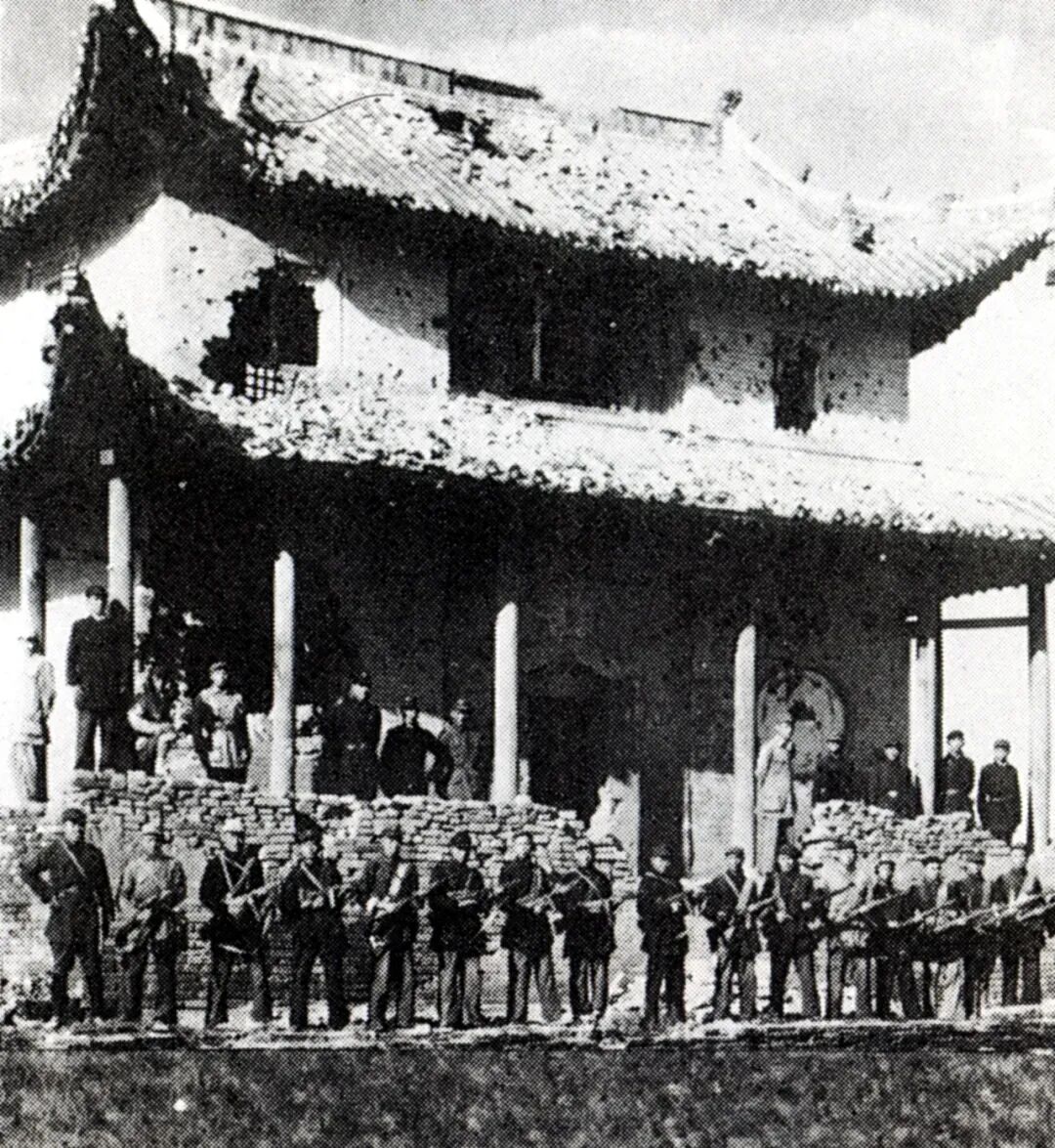 淮阳城攻克后,首先登上南城门的突击队在城门楼上合影。