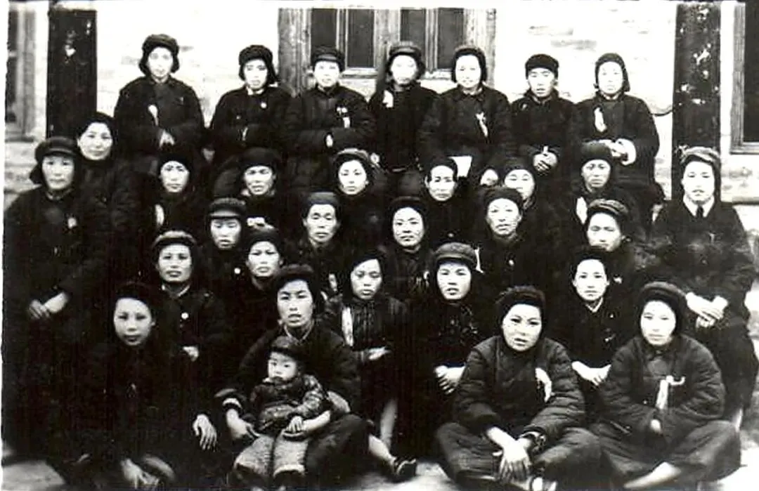 1951年4月6日,淮阳县第二次妇代会全体执委留影。大家头戴解放帽,胸前佩布条标,精神饱满。