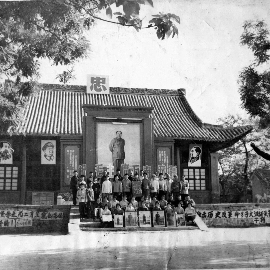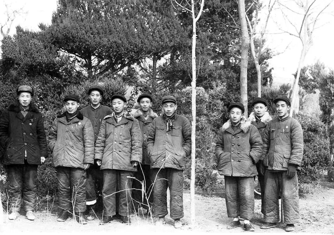 1954年春节,淮阳县委领导在王花园合影。那双排扣毛领棉衣,宽松阔腿的棉裤,现在看起来仍很派头。领导站位不刻板不教条,很随意很自然;背后众多的松柏剪枝造型,已端倪可察。