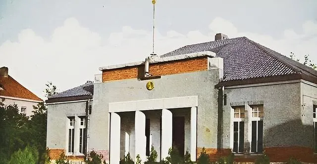 这张正立面更能看清它的骨相,门楣上装饰带有几何味道,立柱挺直,楼体两翼拉得长长的,像一只展开的鸟,和现在玻璃幕墙的冷亮相比,这种墙皮的温度更宜人。