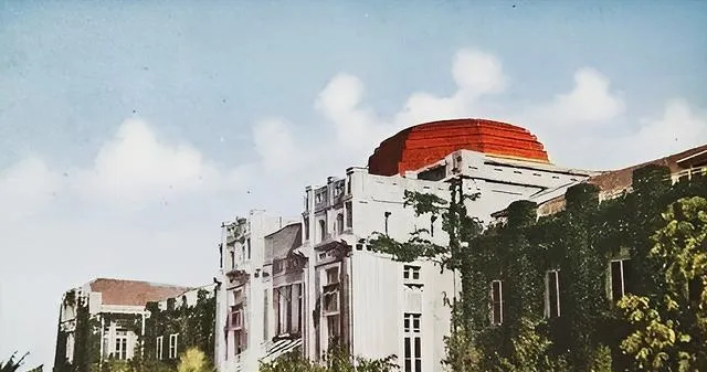 这个红顶白墙的家伙叫省立医院旧楼,圆穹顶像扣了一顶帽子,外墙爬满了藤,窗格细细密密,阳光一照,阴影像刻出来的一样,医生从这道门里进进出出,白袍在绿荫里晃,一下把时间拉慢了。