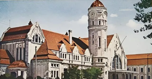 这个门廊四柱的建筑叫胶济铁路济南站,屋顶折线多,山花压在正中,装饰一层叠一层,看着挺讲究,离津浦站不过百米,两座车站挨着用,放在今天也算稀罕的配置。