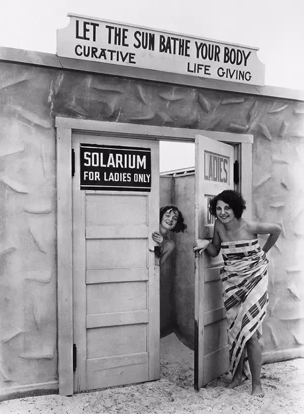 1929年,美国弗罗里达州,两个穿着泳装的美女从一个日光浴场中走了出来。