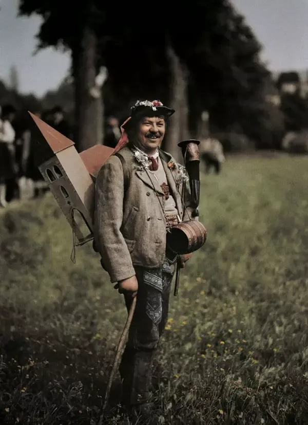 1932年11月,奥地利,农民为了新的教堂带上牛角和桶。