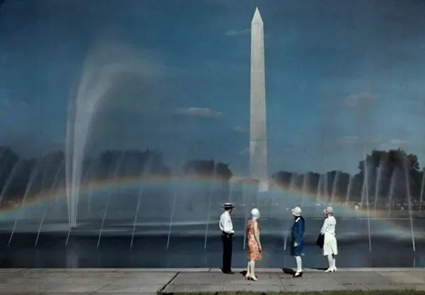 1935年4月,美国,正在欣赏华盛顿纪念碑的游客们。