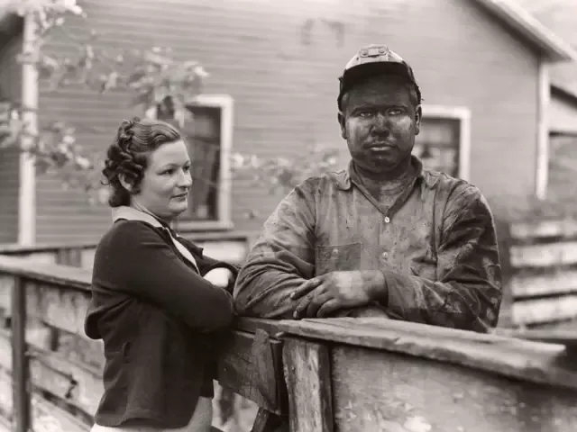 1938年,美国西弗吉尼亚州,一名妇女与一名煤炭工人合影照。