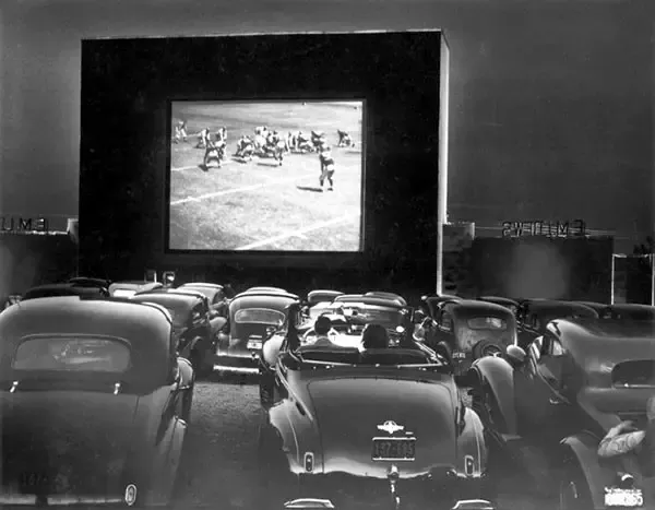 1941年12月,美国弗吉尼亚州,汽车影剧院里看电影的观众。
