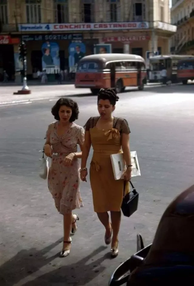 1947年,古巴哈瓦那街头,刚刚逛完商场的两位妇女。