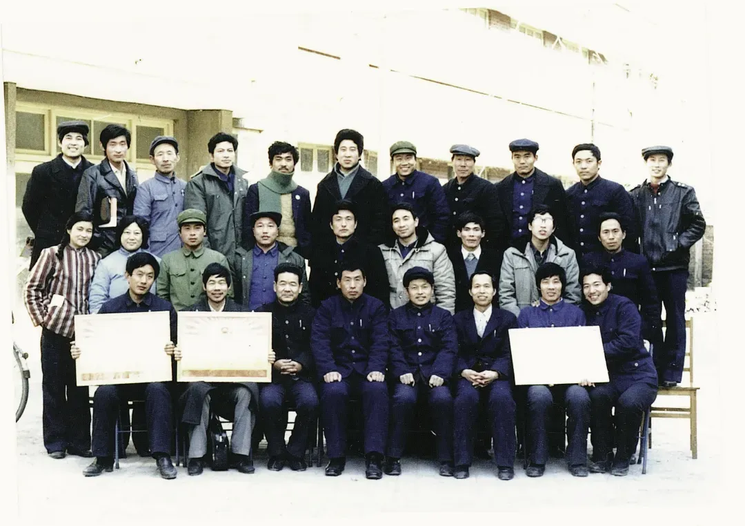 桓台县电影公司公社电影管理站人员合影,后右二为照片提供者。(照片提供者:巩子奎)