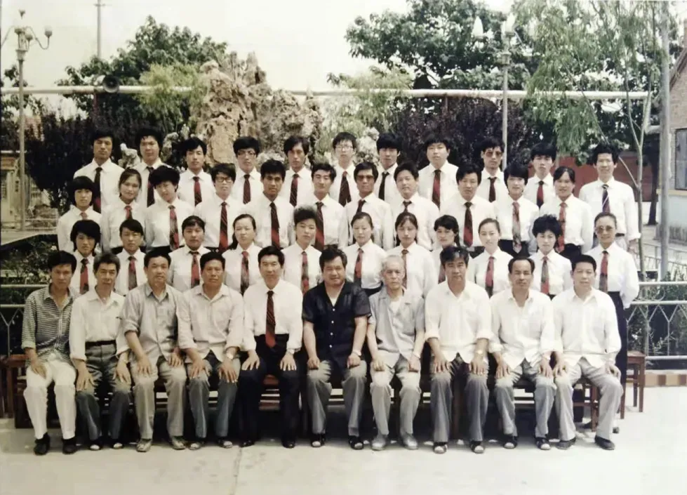 1991年,桓台县举行庆祝建党70周年“庆七一”卡拉ok歌咏比赛,桓台县供销系统代表队在县里活动结束后,又像县供销社领导作汇报演出。此照片儿是参加活动的全体人员在桓台县(唐山)棉花加工厂合影。后右一为照片提供人。 (照片提供者:崔林)
