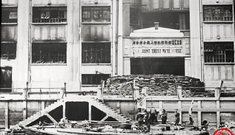 四行仓库外立着英文招牌,门口沙袋垒得齐整,河埠头木梯伸到水面,士兵在堆垛间穿梭,水面映着墙上的弹痕,冷得像一块没化开的铁,白天打,夜里修,手一摸沙袋都是潮的.