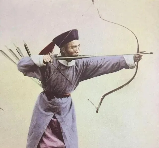 这张照片里的人穿着长袍,拉着弓箭,姿势还挺专业,可惜啊,再专业的弓箭手,也挡不住人家的洋枪洋炮,技术代差太大了.